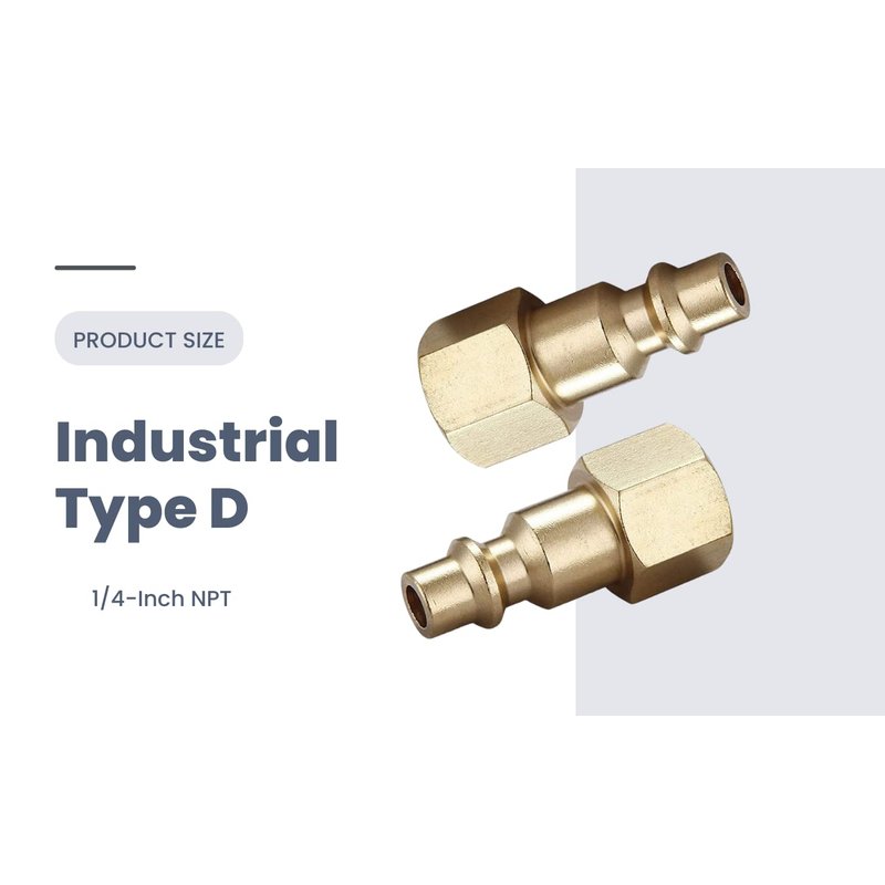 - Suitable for M or D type couplers, interchangeable/compatible with most manufacturers.Industrial Type D 1/4".