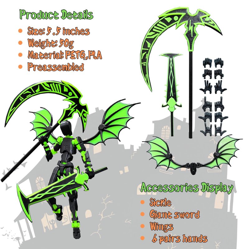 - 【Accessories Dispiay】Sickle*1,Giant sword*1,Wings*2,6 Pairs Hands*1