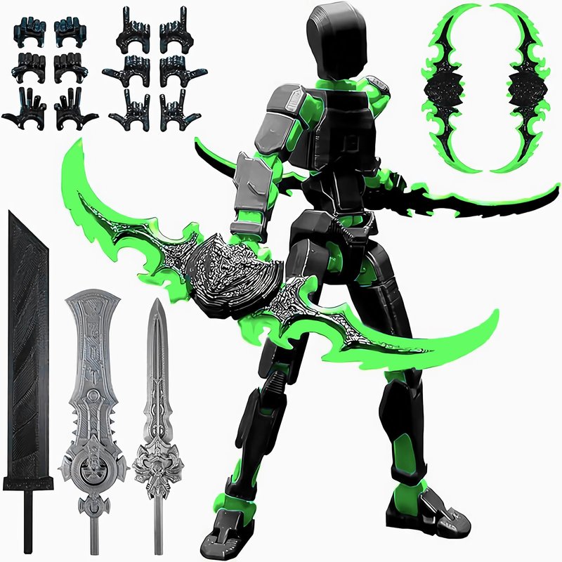 T13 (Assembly Completed) 3D Printed Action Figure,Dummy 13 Robot Action Figure, T13 Collectible Action Figure Articulated, for Collectors Desktop Decorations, muñeco de acción (Black Green)