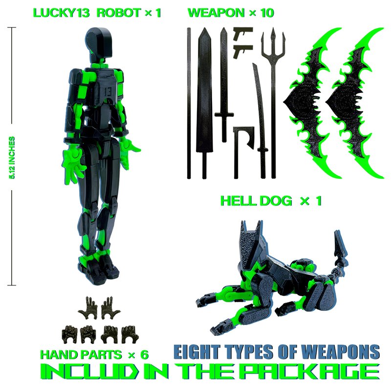 T13 (Assembly Completed) T13 Action Figure Set, 3D Printed Toys Robo 13 Action Figure Dummy 13 Titan 13 Action Figure Nova 13 Stick Titan Action Figure (Black + Green)