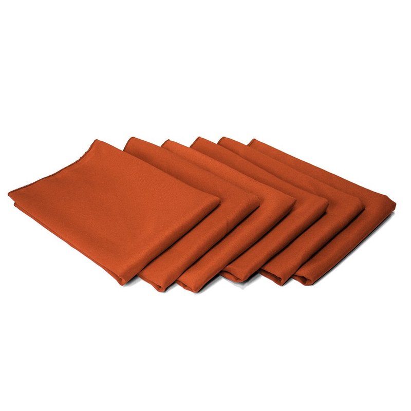 TableLinensforLess 17x17 Inch Polyester Cloth Napkins, Set of 6 (Burnt Orange) Easy Care Fabric, Machine Washable SimplyPoly, pill resistant. Merrowed Edge, finished with a clean tight over-lock edge. Compare serged edge to competitors to see quality. High quality, Grams per Square Meter: 220 GSM. Durable polyester, with superior color retention. Our most popular wedding napkins, great dinner napkins, luncheon napkins. Ideal Banquest Napkins, Wedding Napkins, Dinner Napkins, Home Napkins, and more! Quality and durability you can see and feel. These 17 inch Polyester Napkins can be considered the standard napkin for the fine event industry. Most commonly used for restaurant and banquets events such as weddings, retirement parties, showers or any elegant event. These great value napkins may be considered inexpensive, but they are not cheap napkins. Colors may vary slightly from how they're displayed on your monitor.