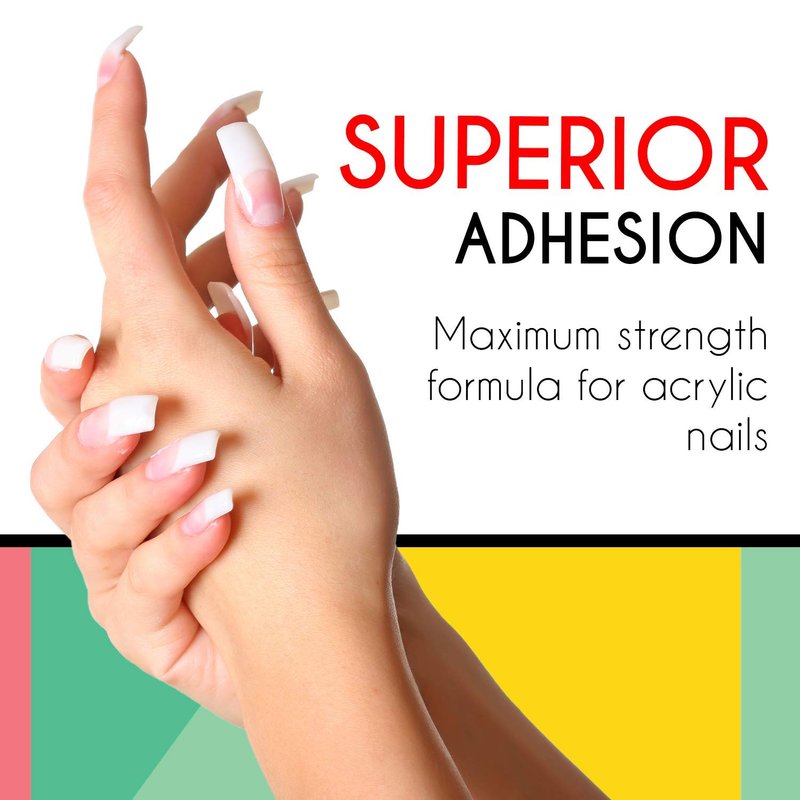 - SUPERIOR ADHESION: Maximum strength formula for acrylic nails to ensure best bond to natural nail plate and ensures an impeccable shine without needing a primer.