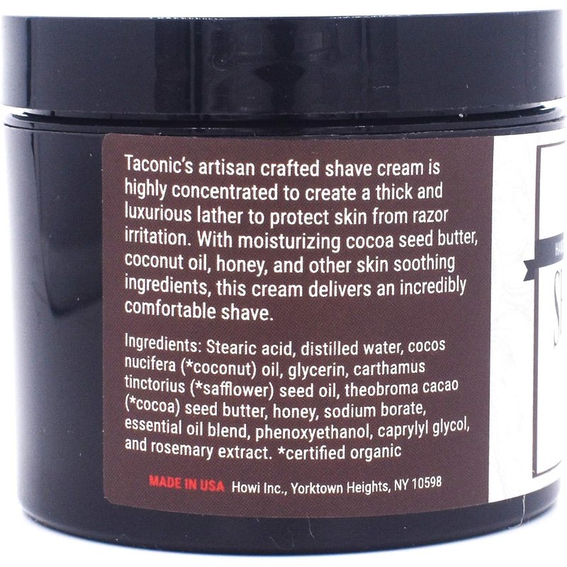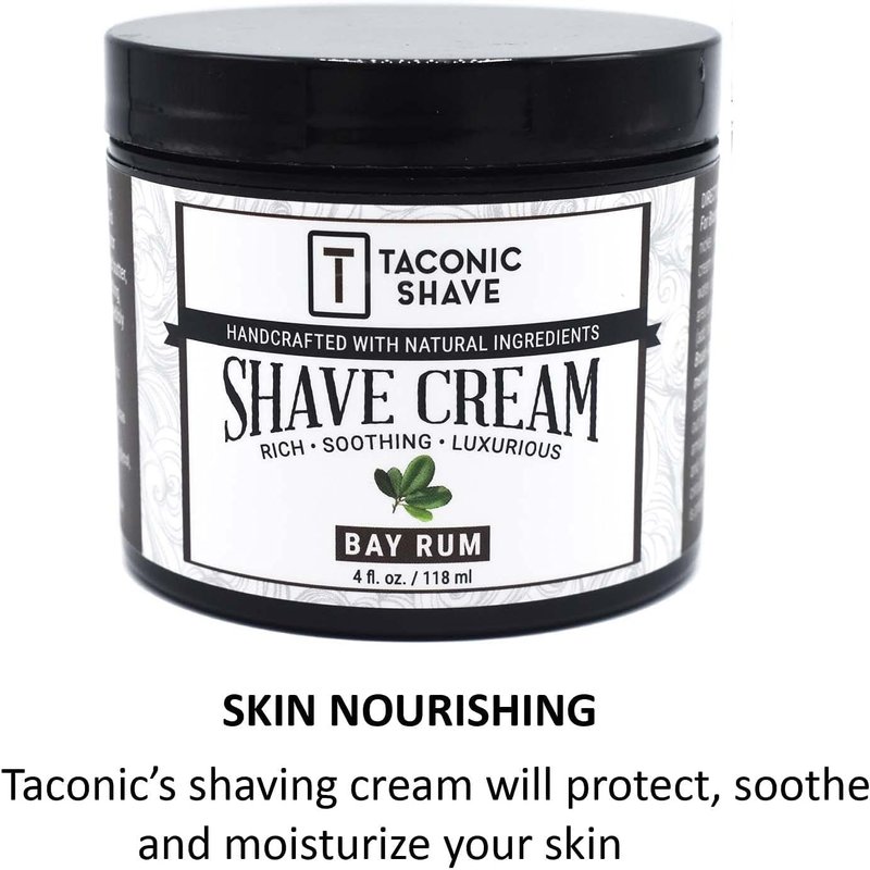 - SKIN NOURISHING: Handcrafted in the USA, this high lather shave cream nourishes and moisturizes your skin. Suitable for brush as well as brushless use, Taconic’s Shave Cream is full of skin-soothing ingredients which result in a refreshed feeling after each shave.