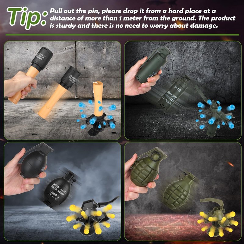 - Sturdy & Portable: Made of premium nylon material, this grenade toy is sturdy, with great fall resistance and toughness, no matter how it falls, it will not break.