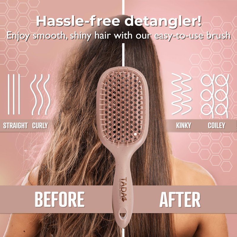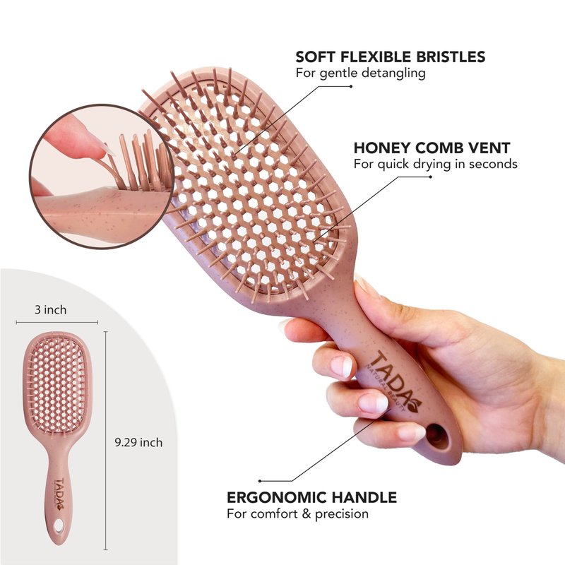Discover the ultimate solution for all your hair care needs with TADA Natural Beauty Vent Hair Brush Detangler. Perfect for curly, thick, wavy, and thin hair, this detangler brush features ventilation holes for quick drying and easy styling. Crafted from biodegradable wheat straw, it’s an eco-friendly addition to your styling tools & appliances. Available in four vibrant colors, Pink, Beige, Green, and Light Pink this detangling brush effortlessly removes hair knots, even in curly and coily hair. Lightweight at only 1.7 lbs, this hairbrush is travel-friendly and suitable for women, men, and kids. Make detangling a breeze with this versatile and durable detangle brush.