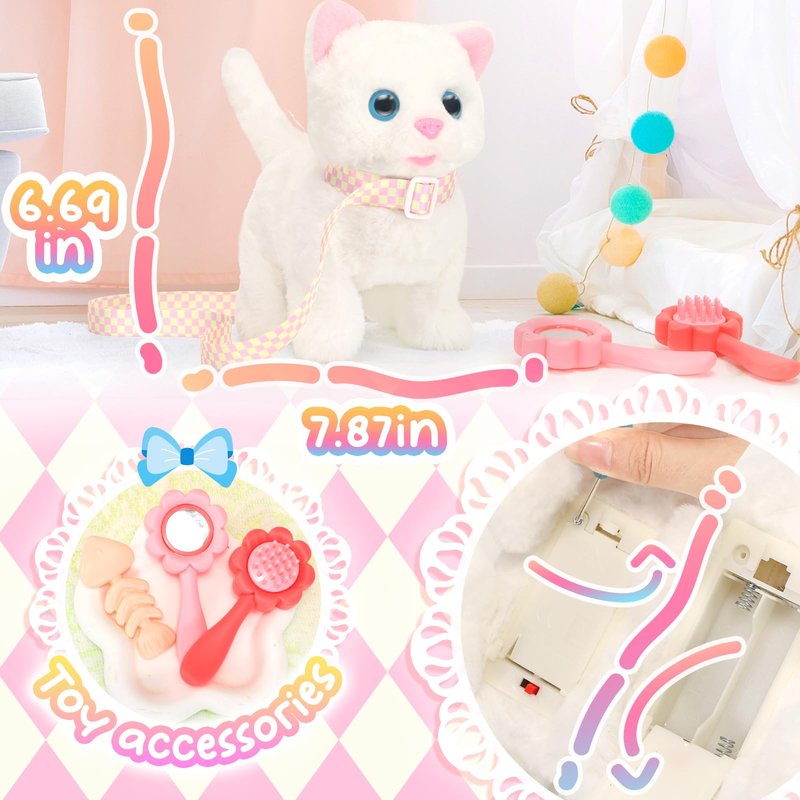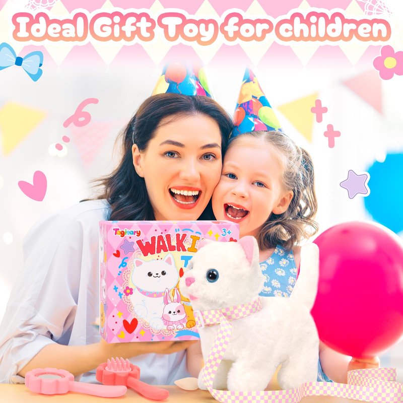 Tagitary Plush Toys Electronic Toy Cat That Walking and Meowing,Tail Wagging Interactive Toy Cat for Kids with Leash,Easter Christmas Birthday Gift for Toddlers Kids