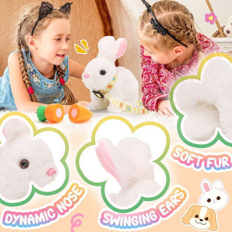 Tagitary Plush Toys Electronic Toy with Sounds,Wiggling Ears,Twitching Mouth and Nose, Interactive Rabbit Toy for Kids with Leash,Easter Christmas Birthday Gift for Toddlers Kids