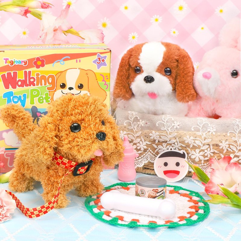 Tagitary Plush Toys Puppy Electronic Toy Dogs That Walk and Bark,Tail Wagging Fake Dog Interactive Dog Toy for Kids with Leash,Easter Christmas Birthday Gift for Toddlers Kids