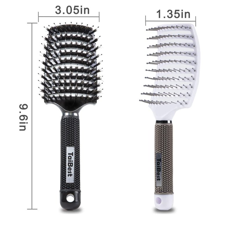 TaiBest Boar Bristle Hair Brush Set - Dry/Wet Hair Brush Detangler for Fine, Thick, Curly Hair - Curved and Vented Hair Brush for Women, Men or Kids
