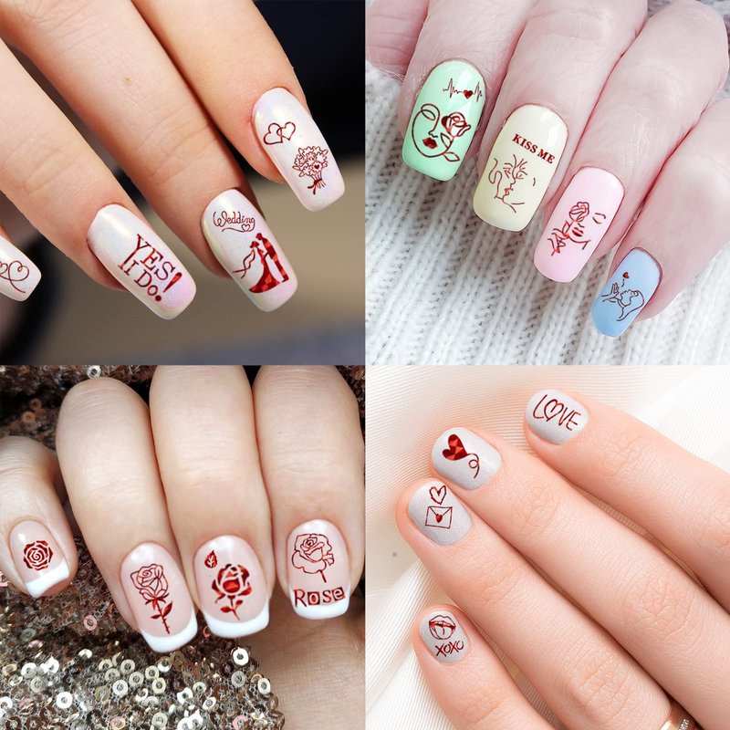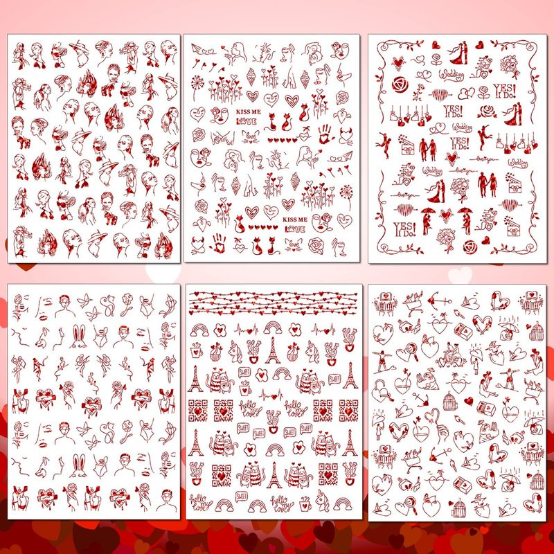 - 👄Multiple design available: You will get 934 pcs nail stickers perfect for Valentine's Day fashion accessories. Includes all sorts of classic Valentine's Day theme: heart, kiss, love, etc.