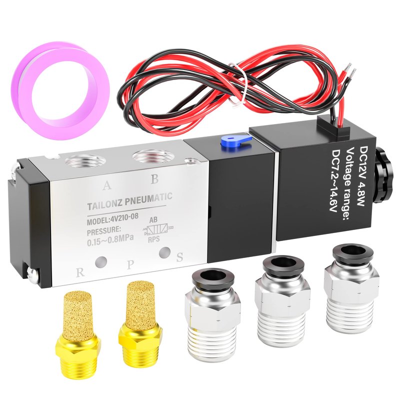 TAILONZ PNEUMATIC 1/4"NPT Solenoid Valve 12V/24V/110V Single Coil Pilot-Operated Electric 2 Position 5 Way Connection Type 4V210-08 Outlet wire
