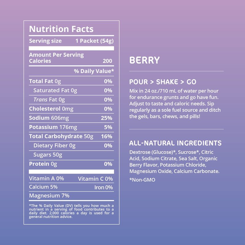- COMPLETE ENDURANCE DRINK: You can ditch your wide assortment of chews, salt pills, and gels because this sports nutrition drink is a complete source of calories, electrolytes, and hydration. Restore your energy and keep moving with our mix that does it all. All you need. Really.