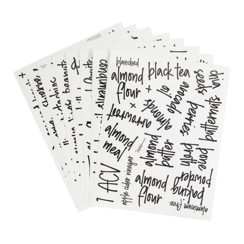 - Pantry Organization Labels: Place this set of 170 preprinted pantry labels for containers, jars, and tall glass canisters with lids to create an organized, functional, and visually appealing kitchen