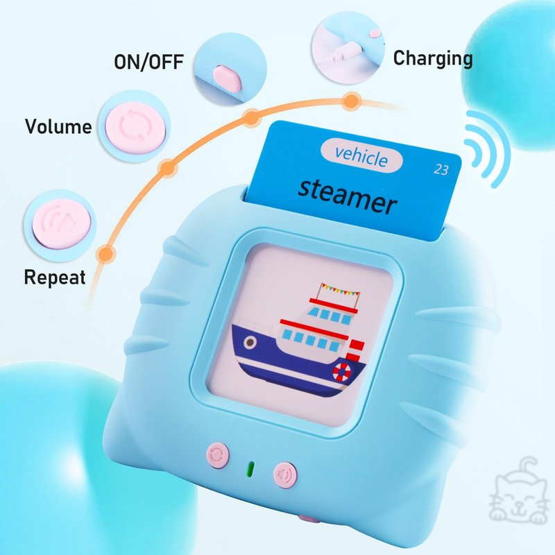 - ✿【Easy To Operate】Insert the card to the flash cards educational toys, the reader will read the words and make a simulated sound automatically,Press the repeat button to repeat the pronunciation and sound effect,This montessori toy keeps kids away from mobile phone and tablets, reduce screen time effectively.