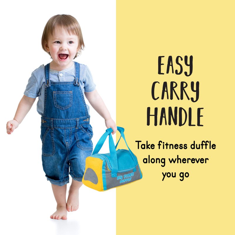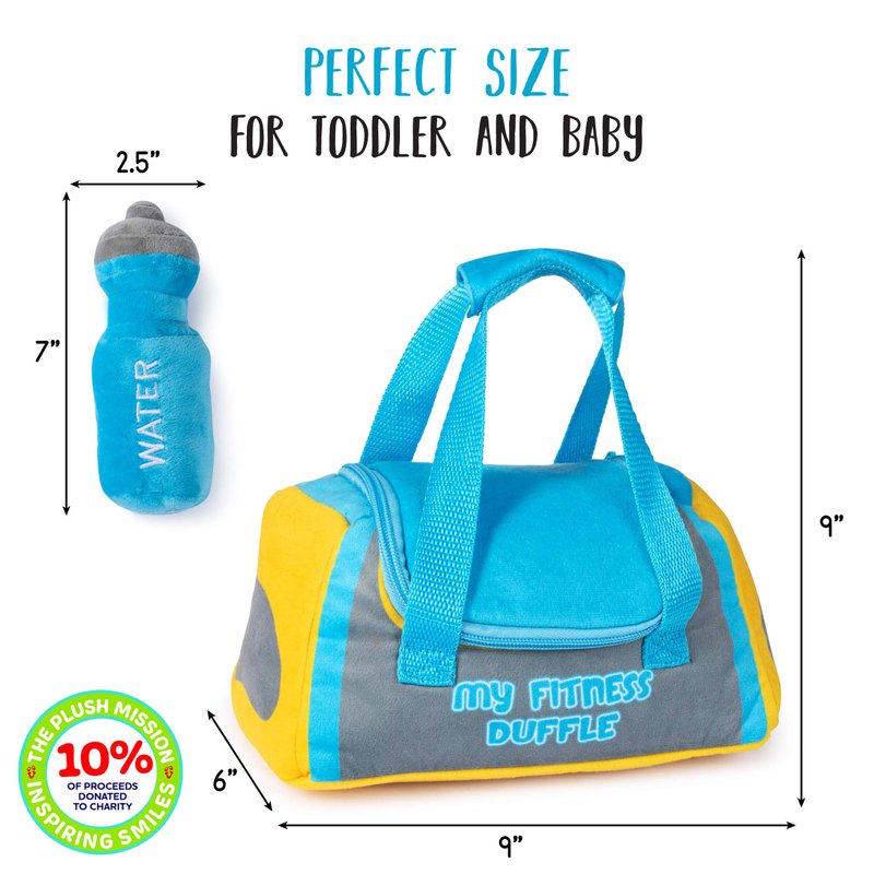 - 💪SIZE: These friendly, huggable, mini workout plush gears are compact, lightweight, and easy to carry along. Every individual miniature plush toy looks and feels soft and cuddly; as well as the Duffle Bag carrier dimensions are 9 x 9 x 6 inches. It’s the perfect size for your babies or toddlers to carry indoors while at home or outside. What better way to tag along your little one while you get a workout!