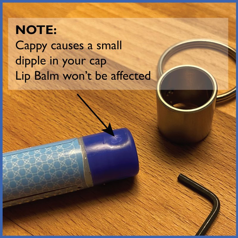 NEVER LOSE YOUR LIP BALM AGAIN.TALLAC CAPPY is the key chain accessory that you never forget. It lives on your keychain. EASY ACCESS: It holds your lip balm cap snuggly in place so you can just remove the lip balm; apply lip balm and you're covered. 303 Stainless Steel. Lightweight but strong. BEAUTIFUL LOOK: Brushed finish that only gets better with use. SMALL COMPACT AND OUT OF THE WAY: it lives on your keychain till you need it. FITS STANDARD 0.15 OZ SIZED CYLINDRICAL LIP BALM: PATENT PENDING