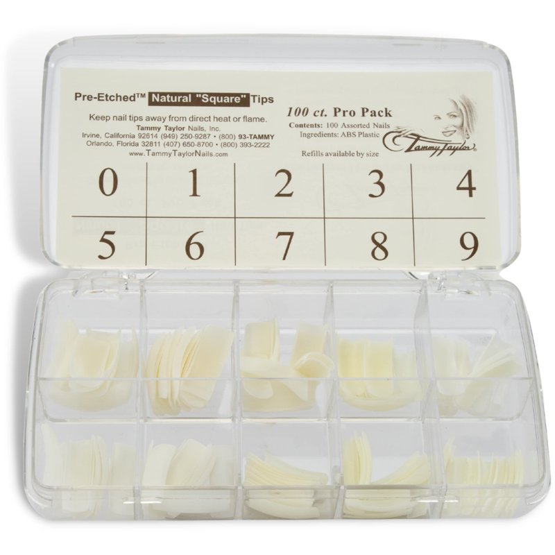 Tammy Taylor Natural Square Nail Tip Extensions | Full Coverage, Natural Lightweight, Long Lasting, Salon Grade Professional Pre Etched Acrylic Nail Tips | Well-Less Fake Nails, 20 count