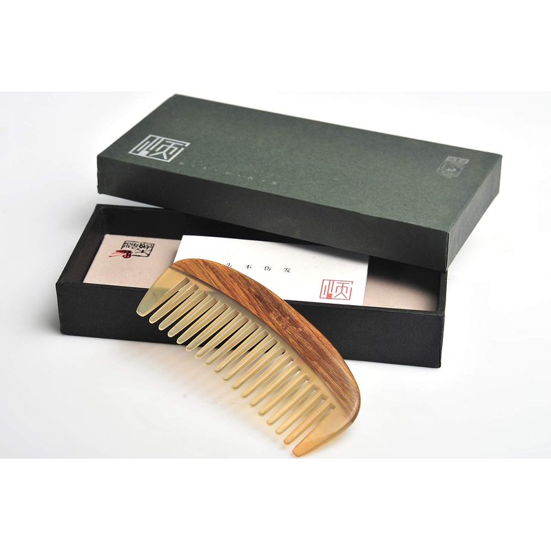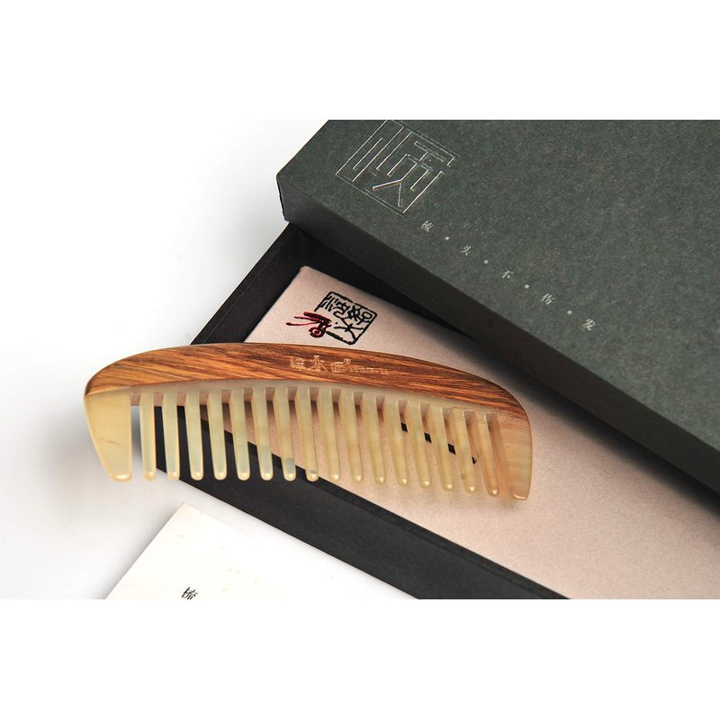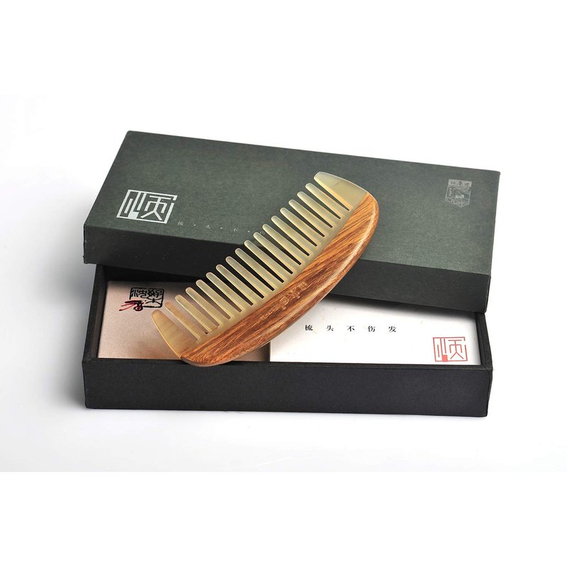 TAN MUJIANG Hair Comb Wooden Sheep or Cow Horn Comb Smooth Luxury Set Comb, Anti-Static YTB Comb 5-11 with Case