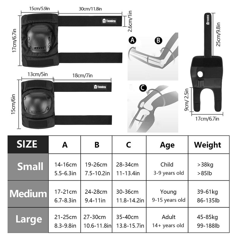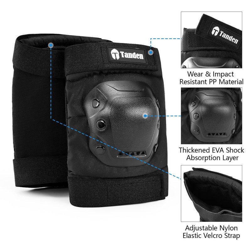 Tanden Skate Protective Gear Adult Knee and Elbow Pads for Roller Skating Black L