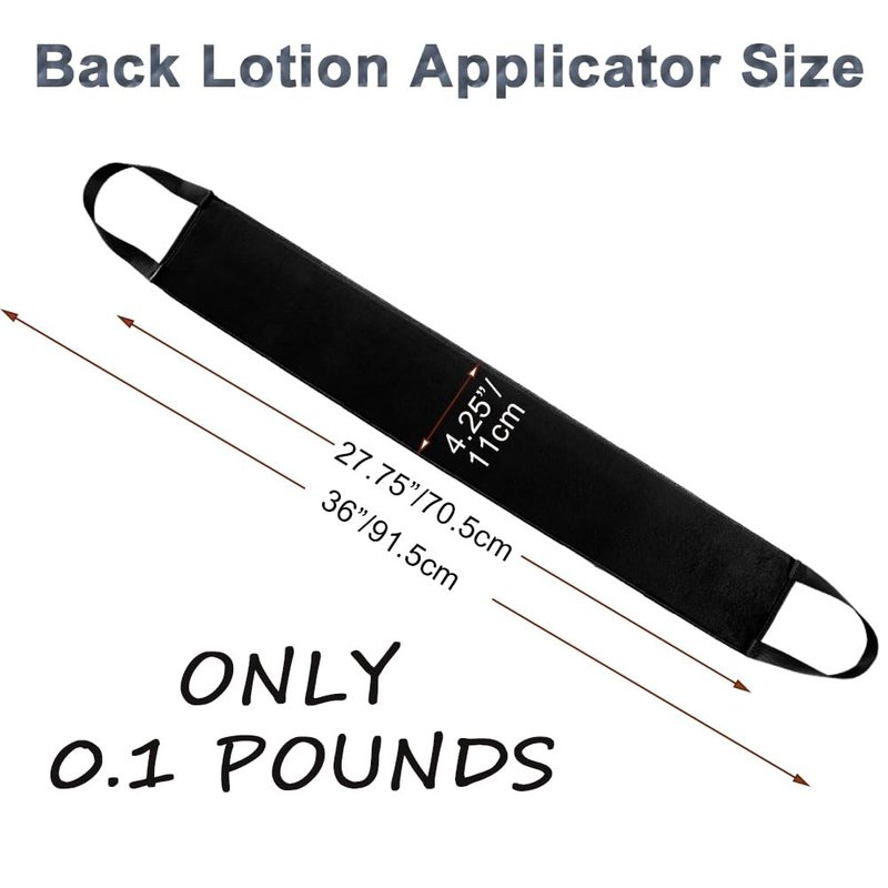 - Durable : Our premium back lotion applicator easy reach is crafted from a durable & stretchable material with well-stitched on rope handles. The lotion applicator band can easily last for a year and beyond. Made of high-quality micro-fiber cloth, the velvet fabric is soft & effective.