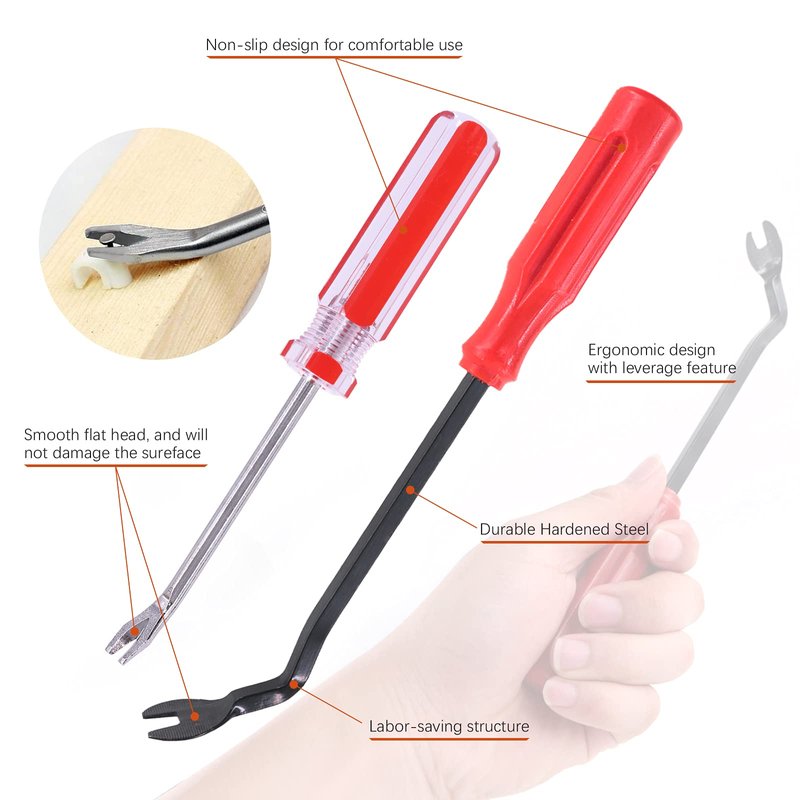 - 【3 Kinds Tack Pullers】 Our tack pullers set includes 1pc V tip tack puller for small screws, 1pc U tip tack puller for larger nails, 1pc staple remover for fine staples (works for up 20 to 200 sheets). 3 kinds tips for various nails, screws or staples can help you easily remove embedded nails in your furniture, wood, floors etc.
