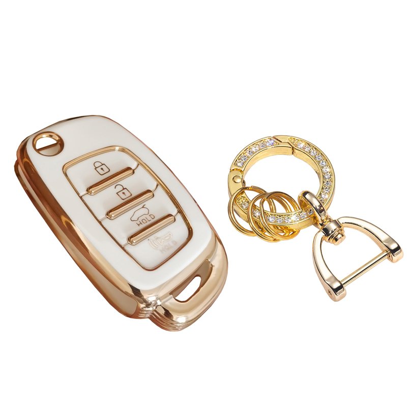 TAPAYICA for Hyundai Key Fob Cover Folding Key Fob Shell with Keychain Fit for Hyundai Santa Fe Sport Sonata Tucson (White-B)