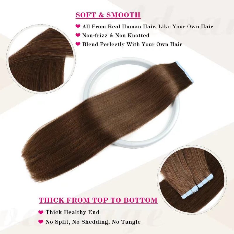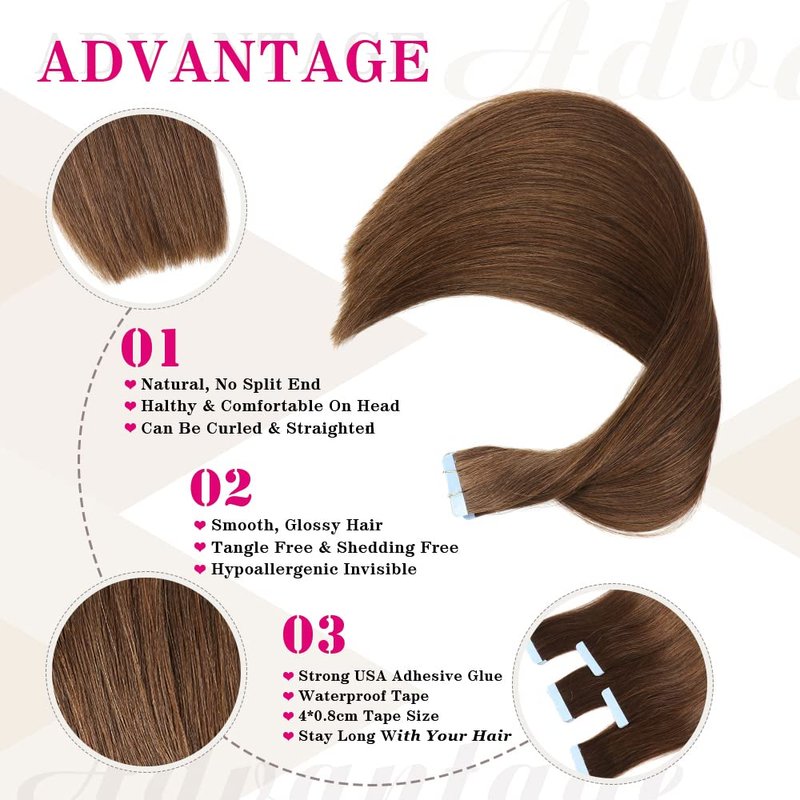 - High Quality Hair Extensions: Tape in human hair extensions with 108% remy human hair. Our tape in hair extensions soft like your own natural hair,no tangles,no shedding,shiny, can be dyed,curled and straightened.