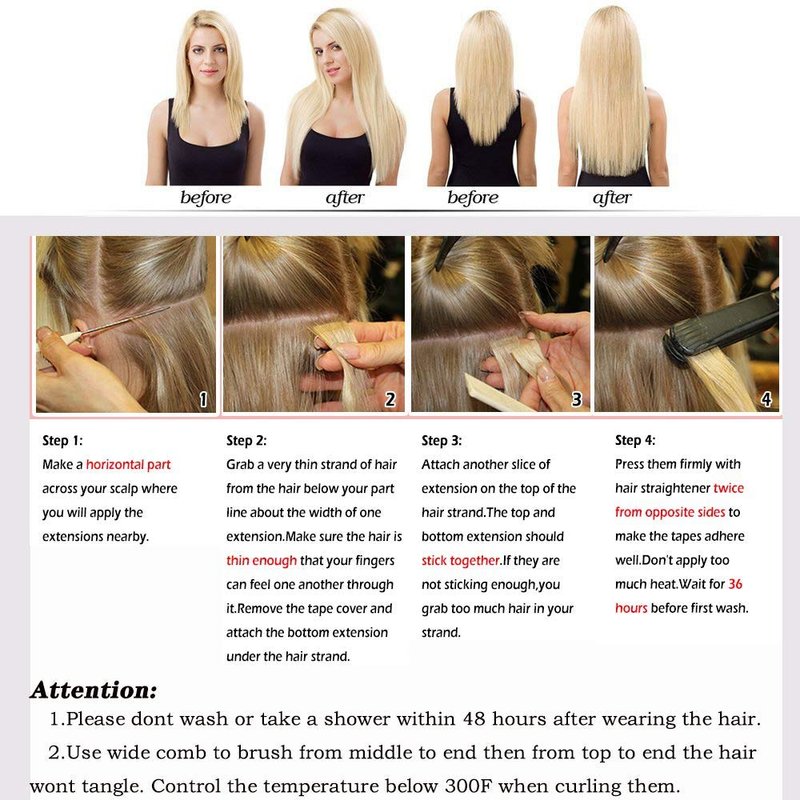 - ♔Specifications♔ --- [Length]: 14”- 22” [Weight]: 50g/set. One package include 20 pieces with double-side tape. To the need for adding both length and volume, we recommend 2 or 3 packs. And for full head install and more styles to change, we recommend 3-5 packs.