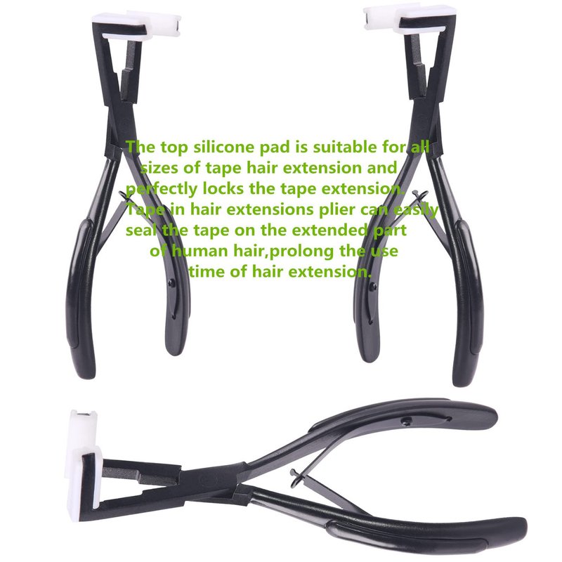 - Hair Sealing Pliers Features:Tape in hair extensions pliers specially designed for extending the tape, the top 4.5cm silicone pad jaws, the same length as the tape hair.The smooth silicone pad prevents damage to the bonding,the adhesive tape can be evenly and easily clamped on the extended part of the hair to significantly increase the adhesion, can better press the two tapes together firmly, better protection extension bond makes your hair extend use Longer time and smoother laying.