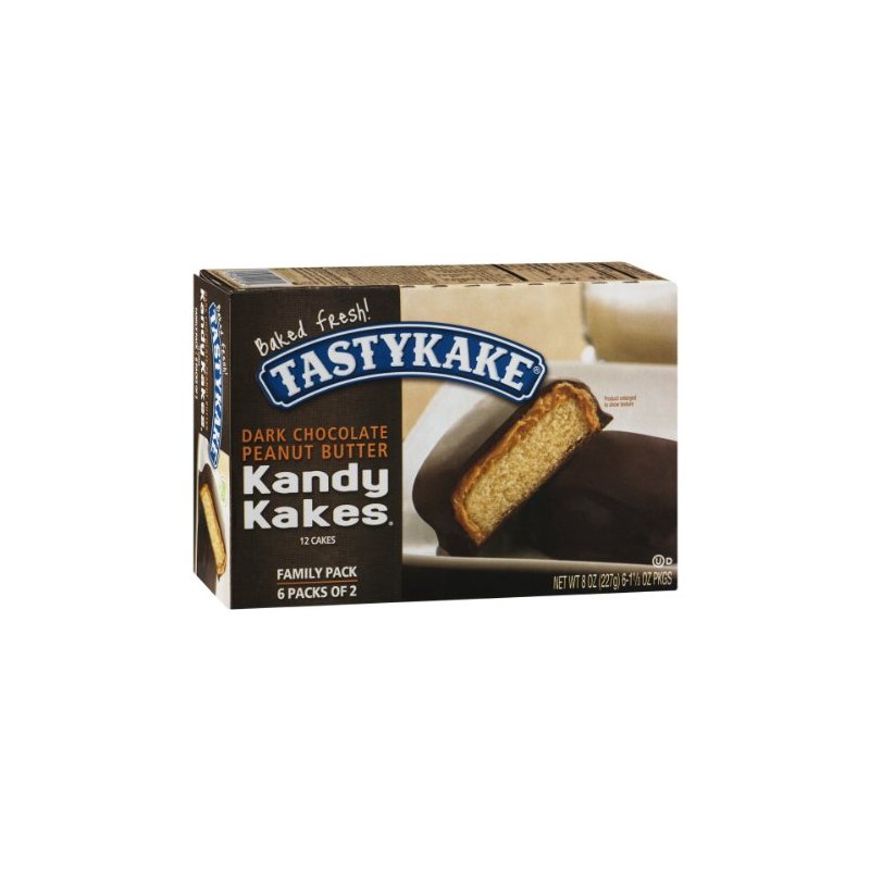 Tastykake Kandy Kakes Dark Chocolate Peanut Butter Snack Cakes, Family Pack of 12 Cakes