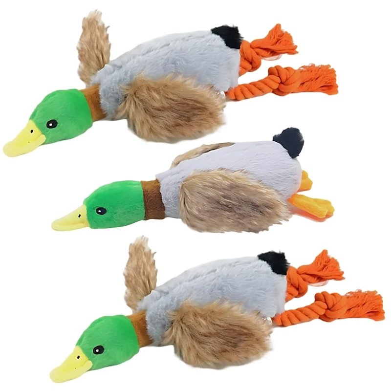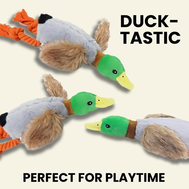 - 2 Pack of Large Duck themed dog toys - Crinkle sound in wings, squeaker in body and rope legs