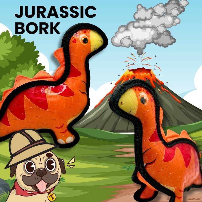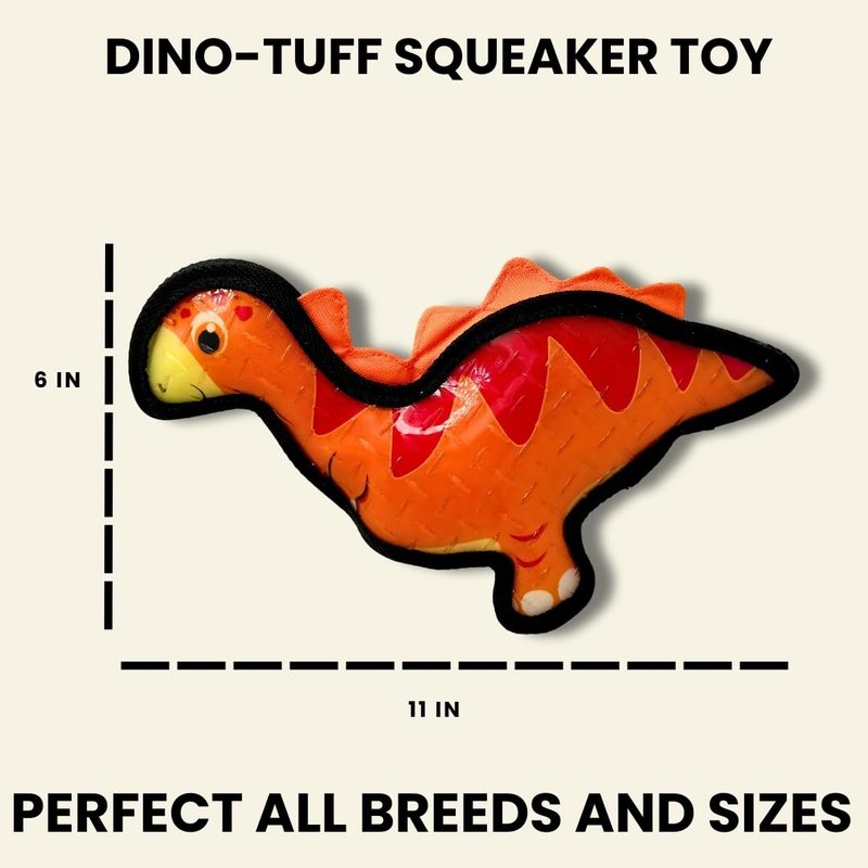 Tater's Choice Dinosaur Squeaky Dog Toy, Strong Stitching, Interactive Play, Medium (Orange)