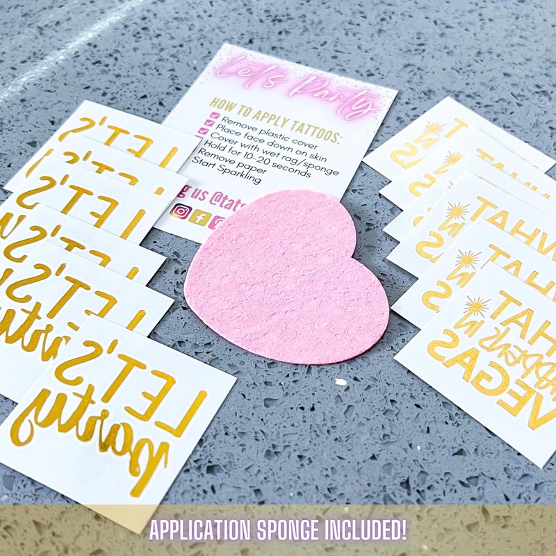 - ✅You are ordering a set of 12 metallic gold temporary tattoos (6 What happens in vegas + 6 let's party)