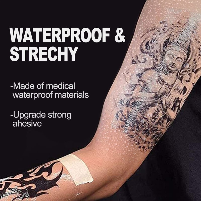 - 【Waterproof For Active Lifestyles】With a strong adhesion on the skin and stretchable, the tattoo healing wrap won't be torn off with your movements. Your precious tattoo is worth being better protected under a workout, shower, or water activities.