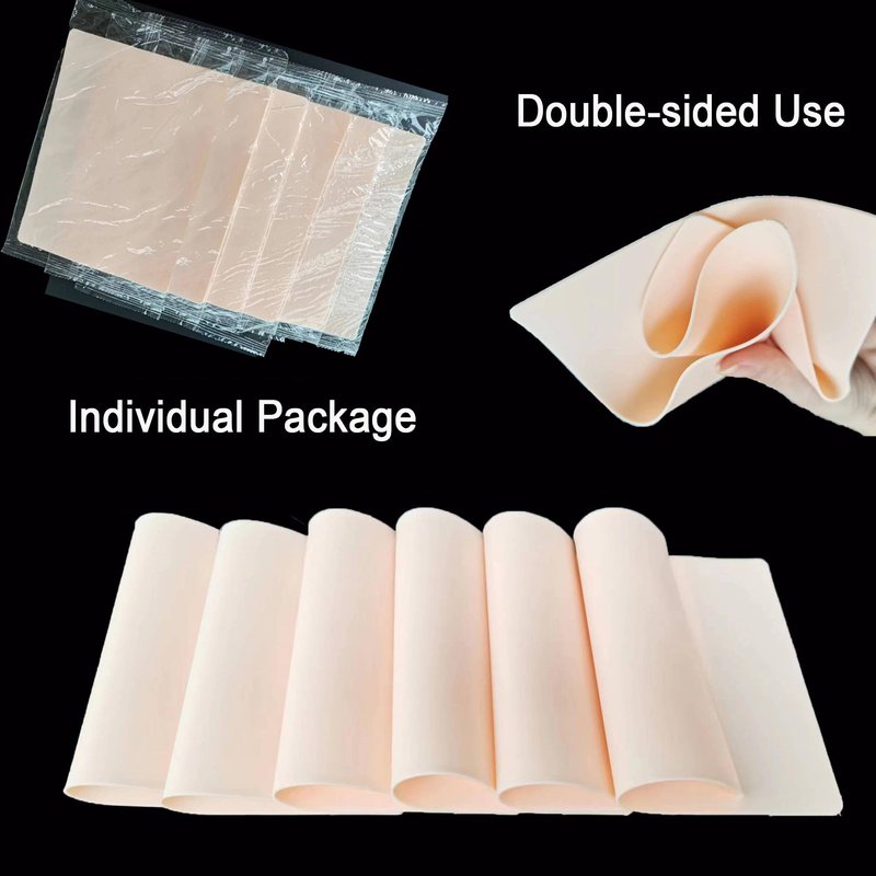 - Blank Fake Skin Materials: The tattooing practice skin was made from quality silicone. Soft and stretchable. Durable and reusable, Suitable for beginners to practice tattoos, eyebrows, and lip. Come with great ductility and own a better skin-like touch feeling. The fake skin can be wrapped around the body surface at will, such as arms, legs, etc. Make real tattoo scenes to help you better learn how to tattoo various body parts. fake skins, 1.2mm thick, 7.4x5.5inch, transfer paper, A4 size.