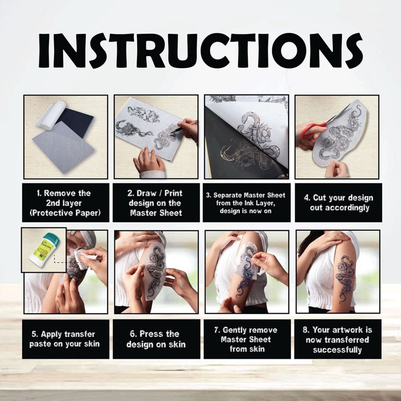 Prgislew Tattoo Practice Skins with Transfer Paper Using Steps: