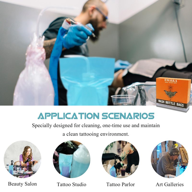 - Why Choose It - The package includes 250pcs tattoo wash bottle bags. And the squeeze bottle bag size is 150*260mm (5.9*10.25in). These disposable tattoo bottle covers are specifically designed for cleaning bottles and are suitable for most bottle sizes. Sufficient quantities, one-time use.