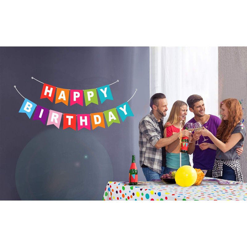 - Size: the polka dot tablecloth is 130 x 180 cm, birthday banner is 13 feet long with 14 flags, each flag measures 5.1 x 7.1 inches (WH), letters all are on one rope; The color of tablecloth matches the banner, vibrant color is matching pennant, cupcake liner, cupcake topper and so on