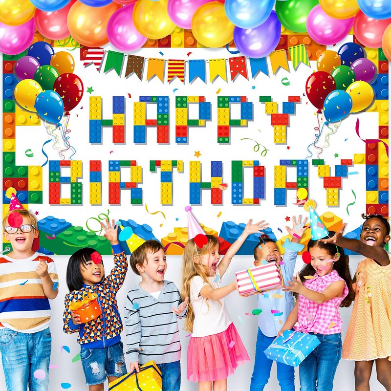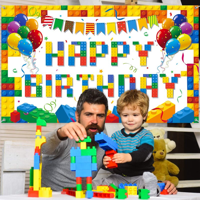 - Building blocks birthday banner: this birthday backdrop is printed with colorful blocks patterns on the surface, including the words of HAPPY BIRTHDAY, suitable for birthday party, which will be the talk of the your themed party decorations