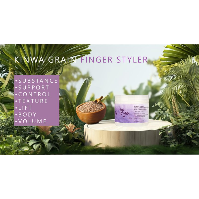 Taya's Kinwa Grain Finger Styler (4 oz) is a 5 in 1 Multi-Tasking Styling formula that replaces these other 5 styling products: your Gel, your Mousse, your Styling Creme, your Texturizer Pomade, and your Shine Spray. IT CREATES A TEMPORARY FILM AROUND YOUR HAIR STRAND, that provides a movable, brushable hold THAT MAKES YOUR HAIR MORE PLAYABLE, FLEXIBLE, so that you can style your hair easily and effortlessly, JUST BY USING YOUR FINGERS!. It gives your style SUBSTANCE, SUPPORT, CONTROL, TEXTURE, LIFT, BODY, VOLUME. Provides Style Memory, so that your hair style last longer, and it is eaiser to re-style. No Build-up or residue in your hair. Perfect next-day Restyler.