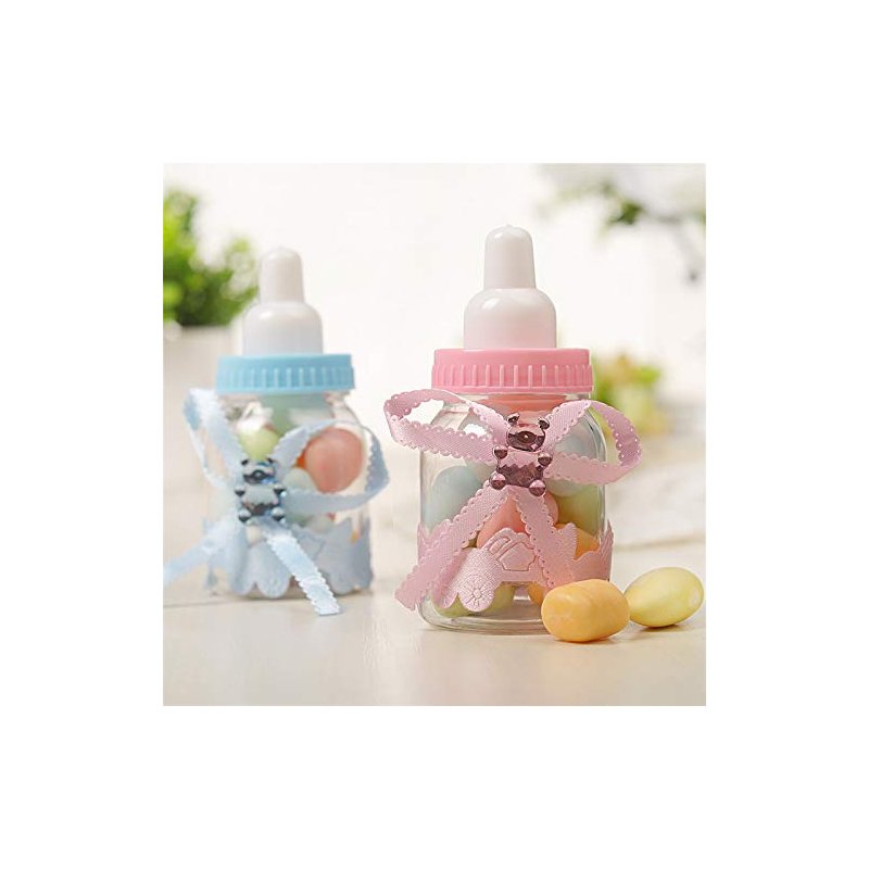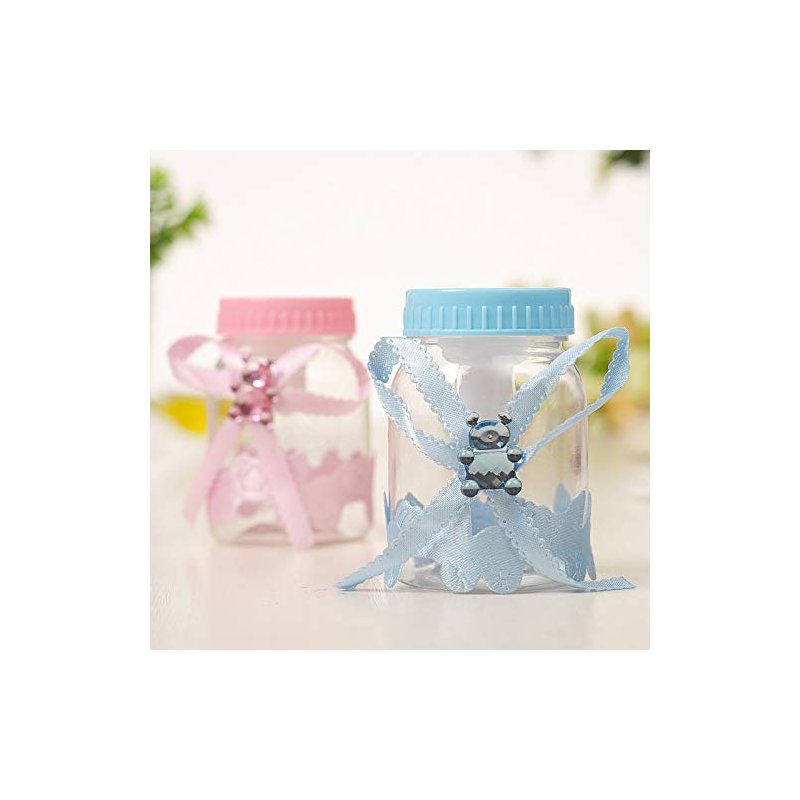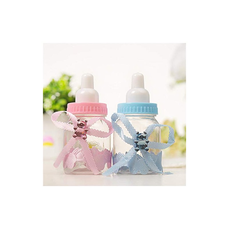 Tayarana 3.5 Inches Baby Bottle Shower Favor,Mini Plastic Candy Bottle,Baby Shower Supplies Boy Girl Newborn Baby Baptism Birthday Party Decor (2 Dozens, Pink ornamented)