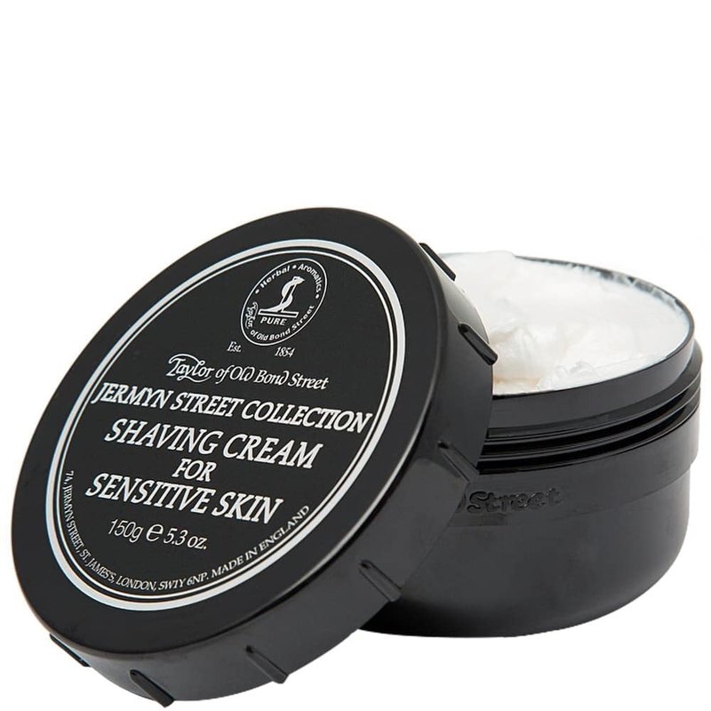 - Jermyn Street Luxury Shaving Cream for Sensitive Skin in a resealable bowl. Use with a brush, delicate fragrance.