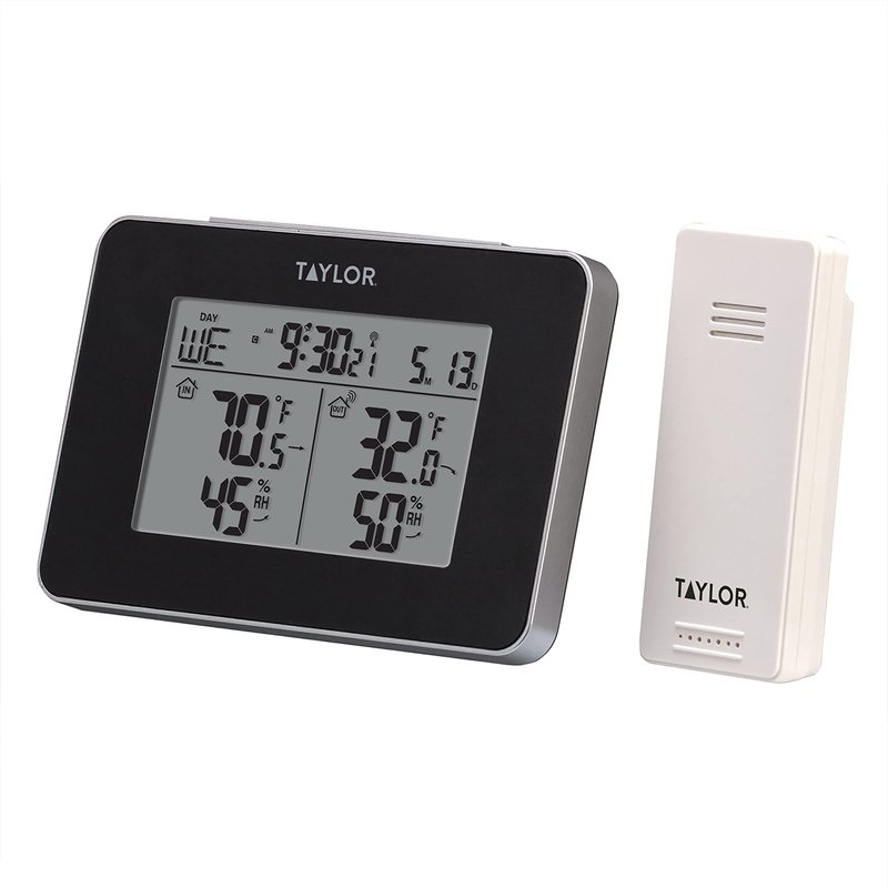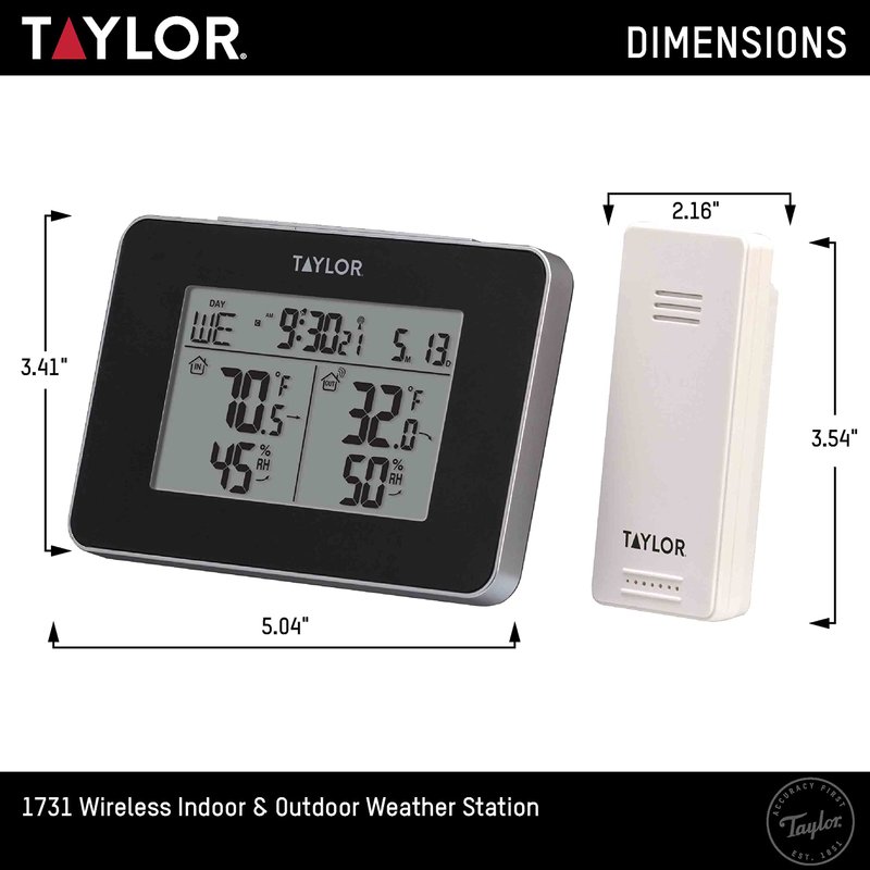 Taylor Wireless Digital Indoor Outdoor Weather Station, Battery Powered, Alarm, 5 x 1.86 x 3.3 inches, Black