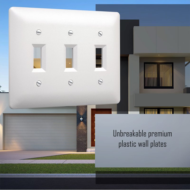 TayMac 4440W Paintable Triple Toggle Light Switch Wall Plate Cover, White, 3-Gang