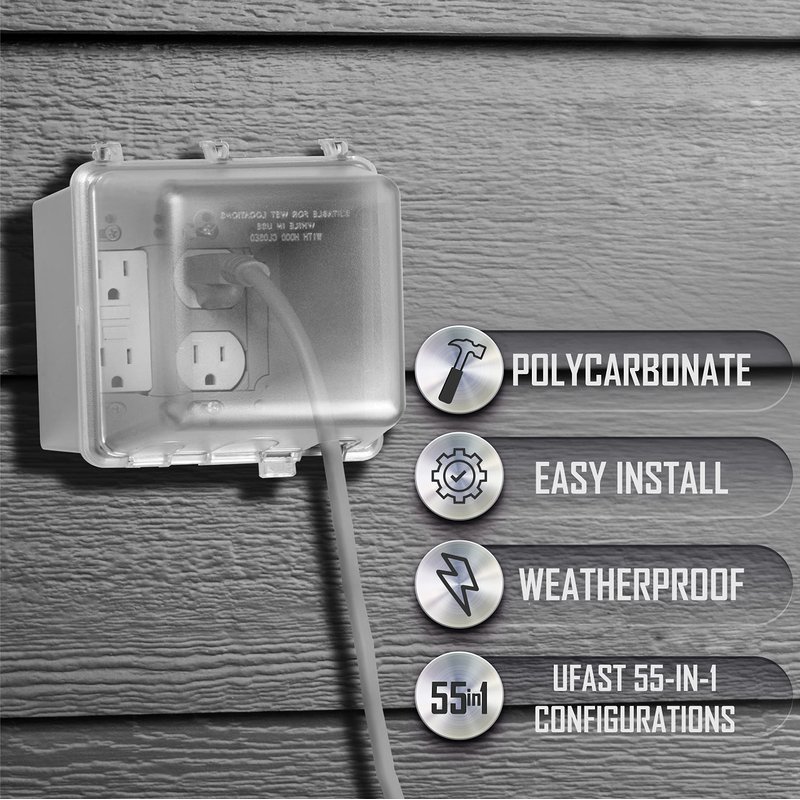 - QUALITY CONSTRUCTION: Our socket cover for outlets is built from high-impact polycarbonate for maximum durability. You have more room for electrical cords and it includes gasket and mounting hardware.