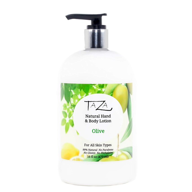 Taza Premium Natural Olive Hand & Body Lotion, 16 fl oz (473 ml) Leaves Your Skin Smooth, Soft & Glowing Contains: Sunflower Seed Oil, Shea Butter, Coconut Oil, Sweet Almond Oil