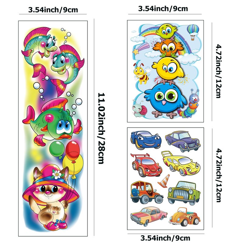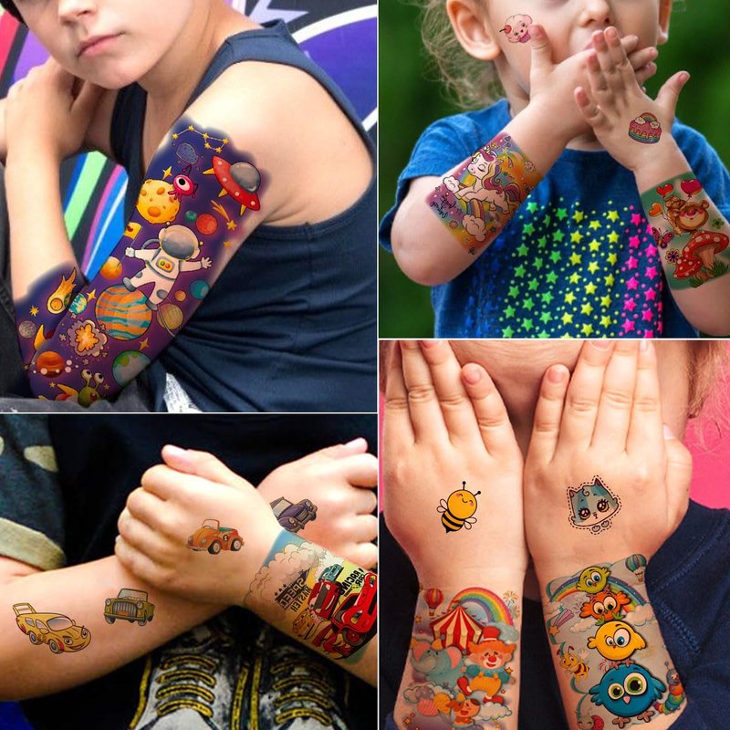 - 【Applicable Occasions】These children's tattoos can be worn anytime,anywhere!tattoo stickers make great kids prizes, kids birthday party supplies,goodie bags stuffers,family party,school event,christmas,halloween,also can apply them to some smooth objects,for example,glass,stationery,paper,plastic,phone case.