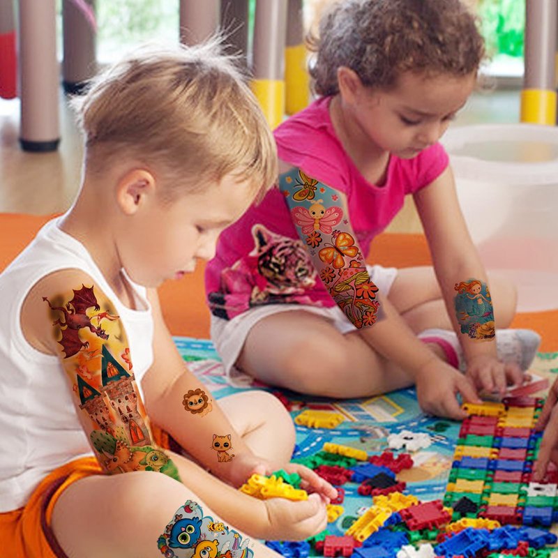 - 【Tattoo Stickers for Girls Boys】Brightly colored temporary tattoo sleeves designed for kids,half-arm tattoo,small cartoon tattoo,you can used these tattoos for arms,shoulders, back,chest,legs,face,neck and worn any where on your body,that will meet the whole kids party need! They will bring great fun to children's parties,these fake tattoos are suitable for boys and girls,they will love it very much.