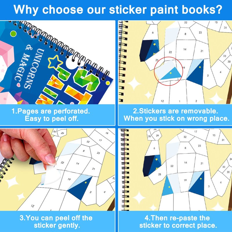 - Birthday Gift Idea: whether you need a gift to give your child for the party, a birthday, or as a reward, sticker by number book set makes a great treat. These fun number kits are also great as contest prizes, as holiday bag stuffers, or for sleepover parties and road trips. Great for ages 3+.