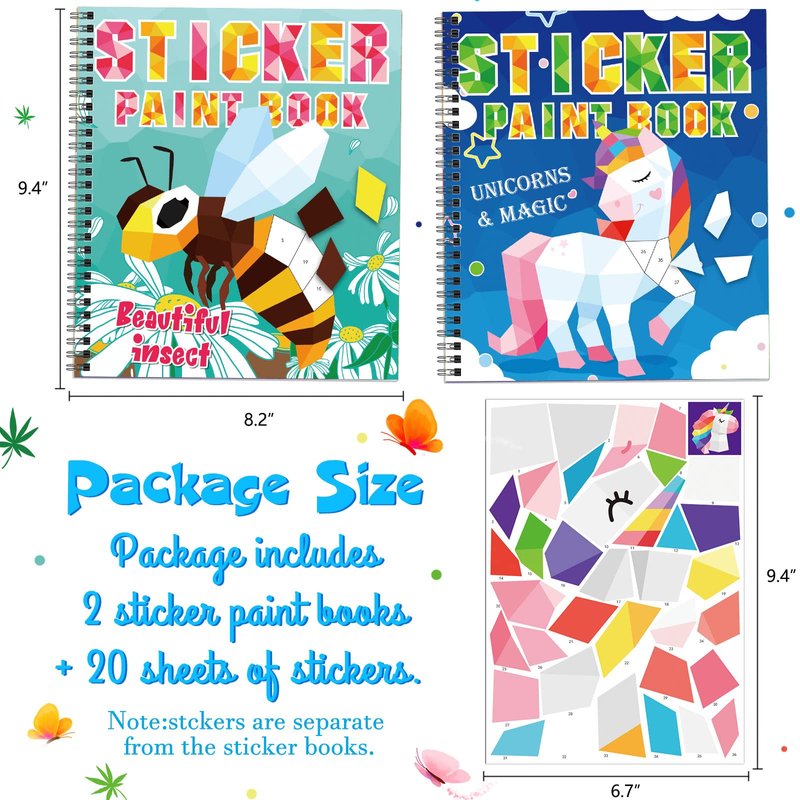 TBEEJ 2PCS Crafts for Kids Ages 4-8 Sticker Paint Books Includes Unicorn Queen Insect Witch Monster and More Designs Gift Party Create 20 Pictures(Sticker Sheets are Separate)